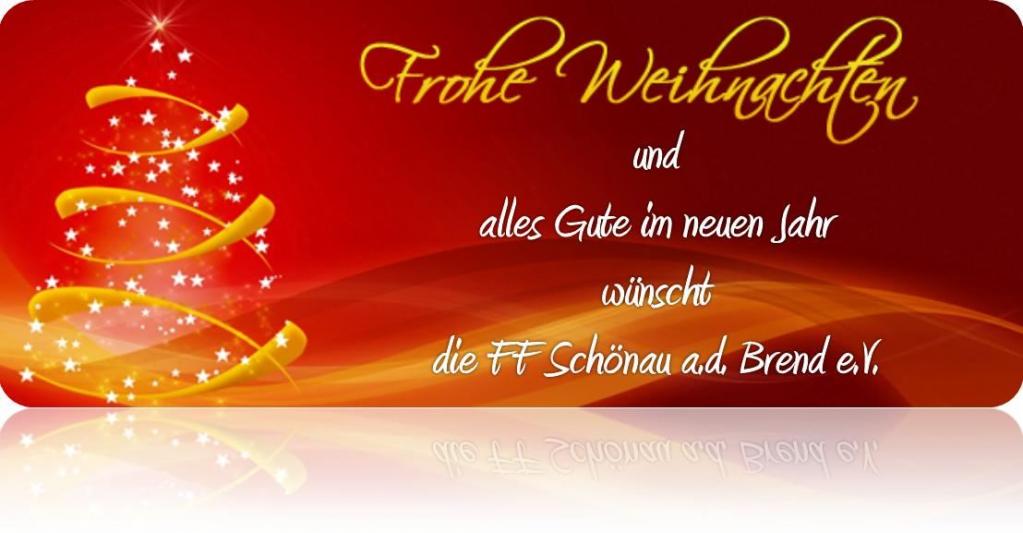 Die Freiwillige Feuerwehr Schönau a.d. Brend e.V. wünscht Ihren Mitgliedern sowie der gesamten Dorfbevölkerung ein frohes Weihnachtsfest und ein gutes und gefahrloses Jahr 2012.