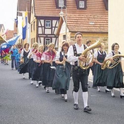 (zir) Ein beeindruckender Festzug mit Feuerwehren aus dem gesamten Landkreis bewegte sich am frühen Samstagabend durch die fahnengeschmückte Rhönstraße in Schönau. Der Zug war der Auftakt zu den Feierlichkeiten anlässlich der Indienststellung und Segnung des neuen Feuerwehrlöschfahrzeuges STLF 10/6 für die Schönauer Feuerwehr. Ein richtiger Hingucker im Rahmen des Zuges waren die Musikantinnen und Musikanten der Weisbacher Trachtenkapelle (Bild) bei ihrem Auftritt im Festzug des Schönauer Feuerwehrfestes am Samstagabend. In prächtiger bunter Rhöner Tracht erhielten sie natürlich sehr viel Beifall von den Zuschauern an der Zugstrecke. Ein ausführlicher Bericht über das Fest folgt in unserer morgigen Ausgabe.
