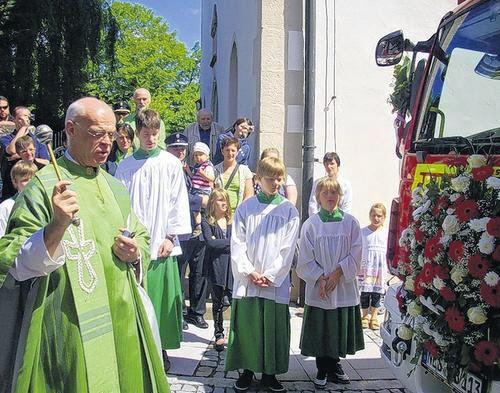 Nach dem Festgottesdienst am Sonntagmorgen erhielt das neue Fahrzeug den kirchlichen Segen durch Pfarrer Manfred Endres. Er machte vor allem auf die Bedeutung des Ehrenamtes als ungemein wichtigen Bestandteil eines funktionierenden Gemeinschaftswesens aufmerksam und sagte allen Dank, die sich in ihrer Freizeit dem Wohl ihrer Mitmenschen annehmen.